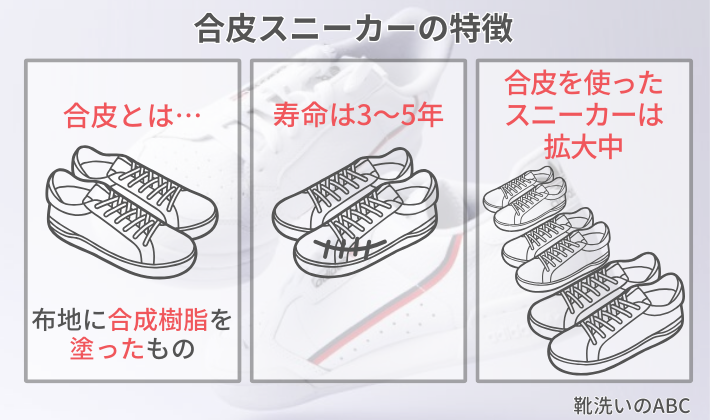 そもそも合皮がどういうものかを理解していない人も多いと思います。そこでここからは、合皮スニーカーの特徴について解説していきます。